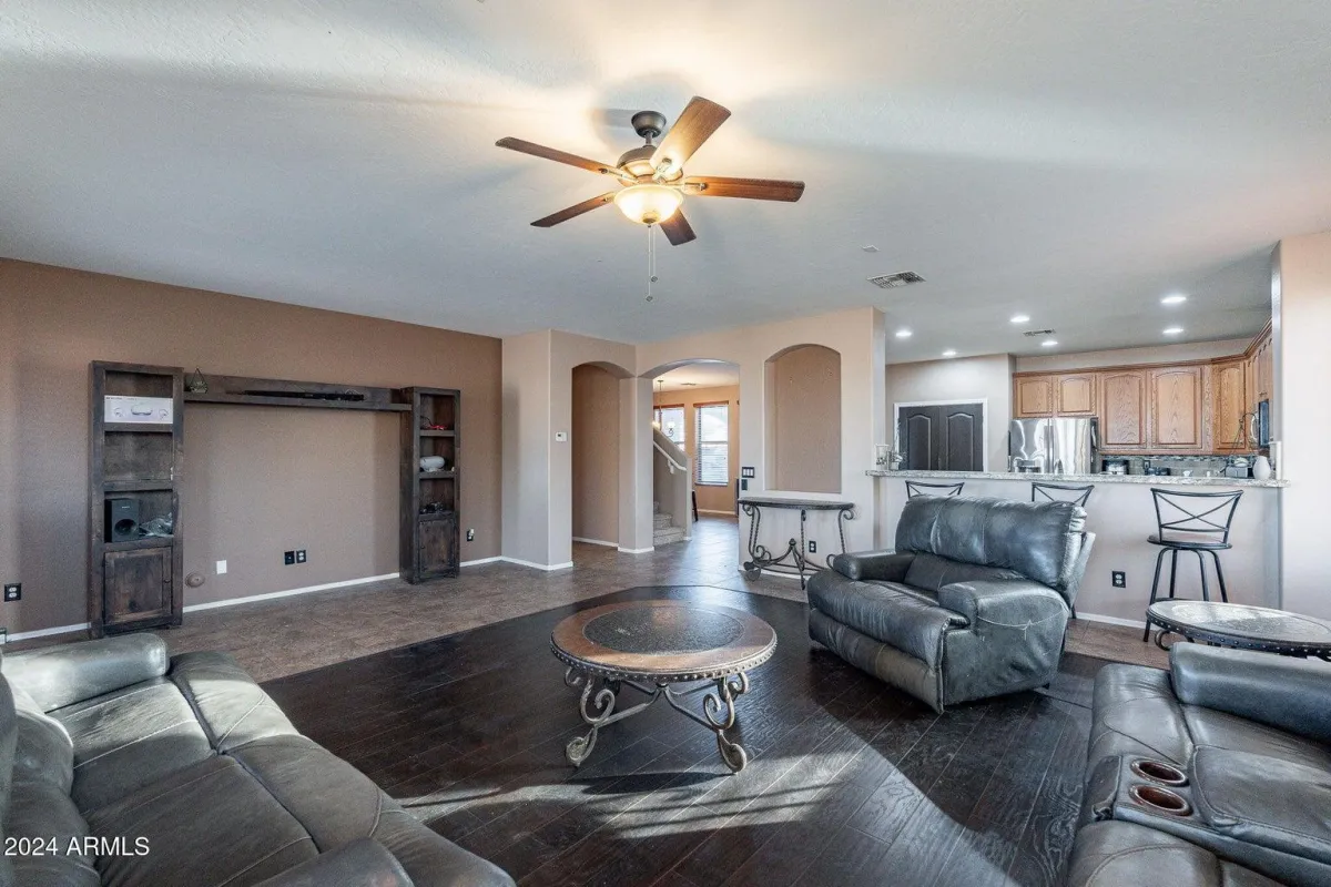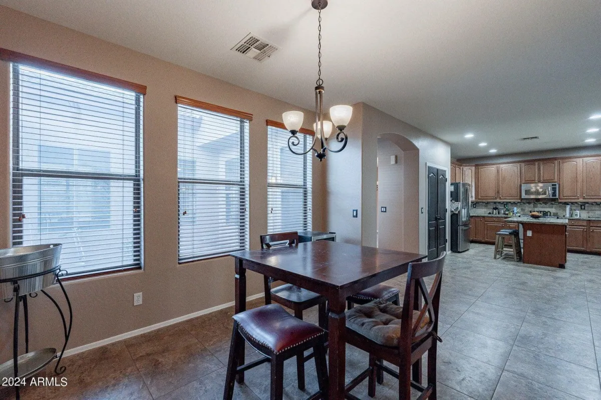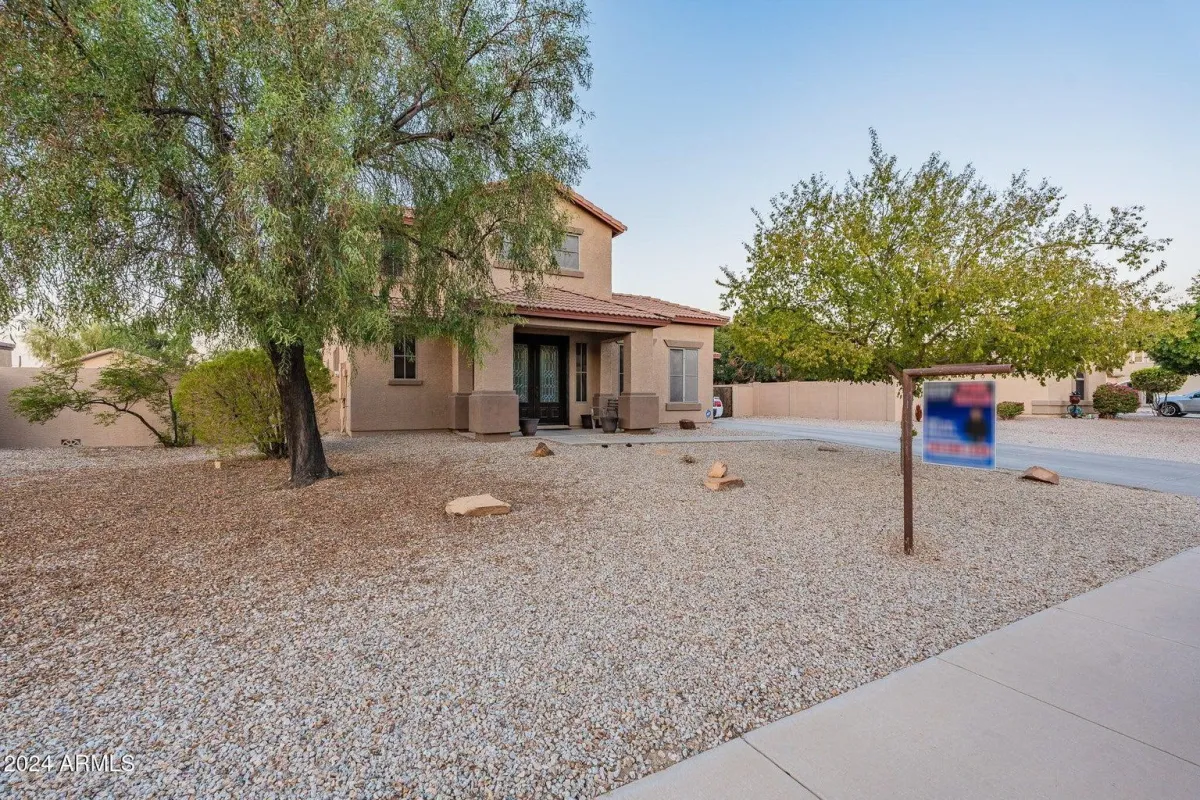 The property at 32121 N Chestnut Trail, San Tan Valley, AZ 85143 is a 5-bedroom, 3.5-bathroom single-family home located in the Johnson Ranch community. With 4,223 sq ft of living space on a 0.41-acre lot, this two-story home includes a spacious layout with multiple entrances, a courtyard, and a patio. The home features a family room, bonus/game room, loft, and a separate den/office. The kitchen offers granite countertops and electric appliances. The property has a 3-car tandem garage and community amenities like a golf course, pool, and playground. It is in the Florence Unified School District and has a quarterly HOA fee of $237.81. The asking price is $719,800.