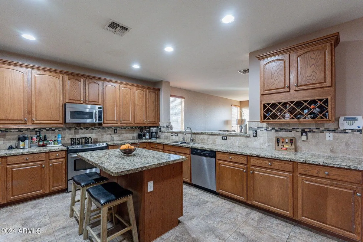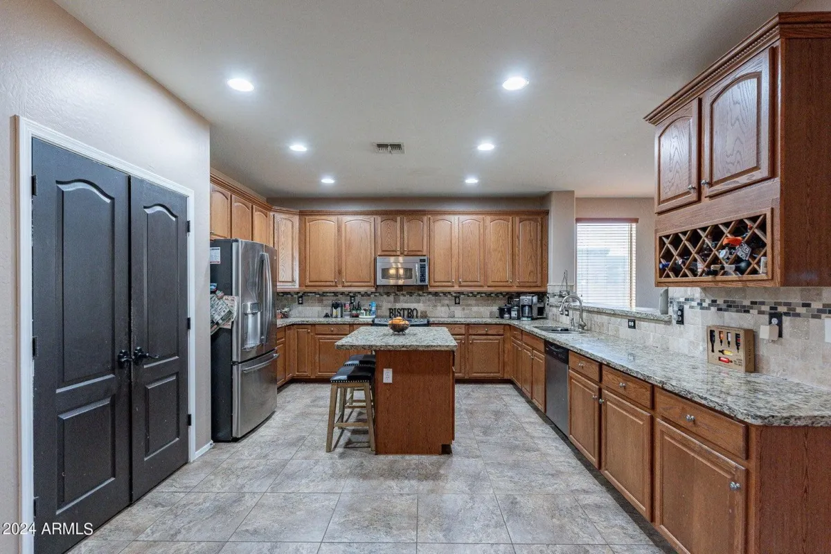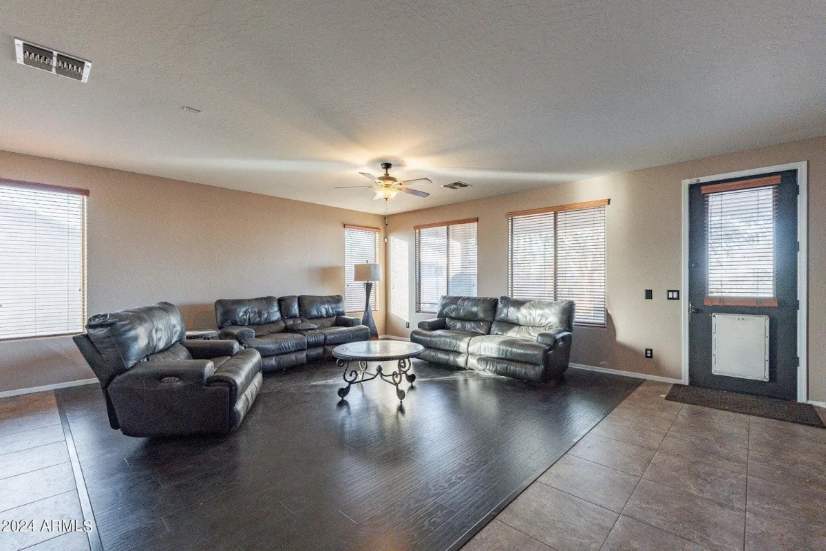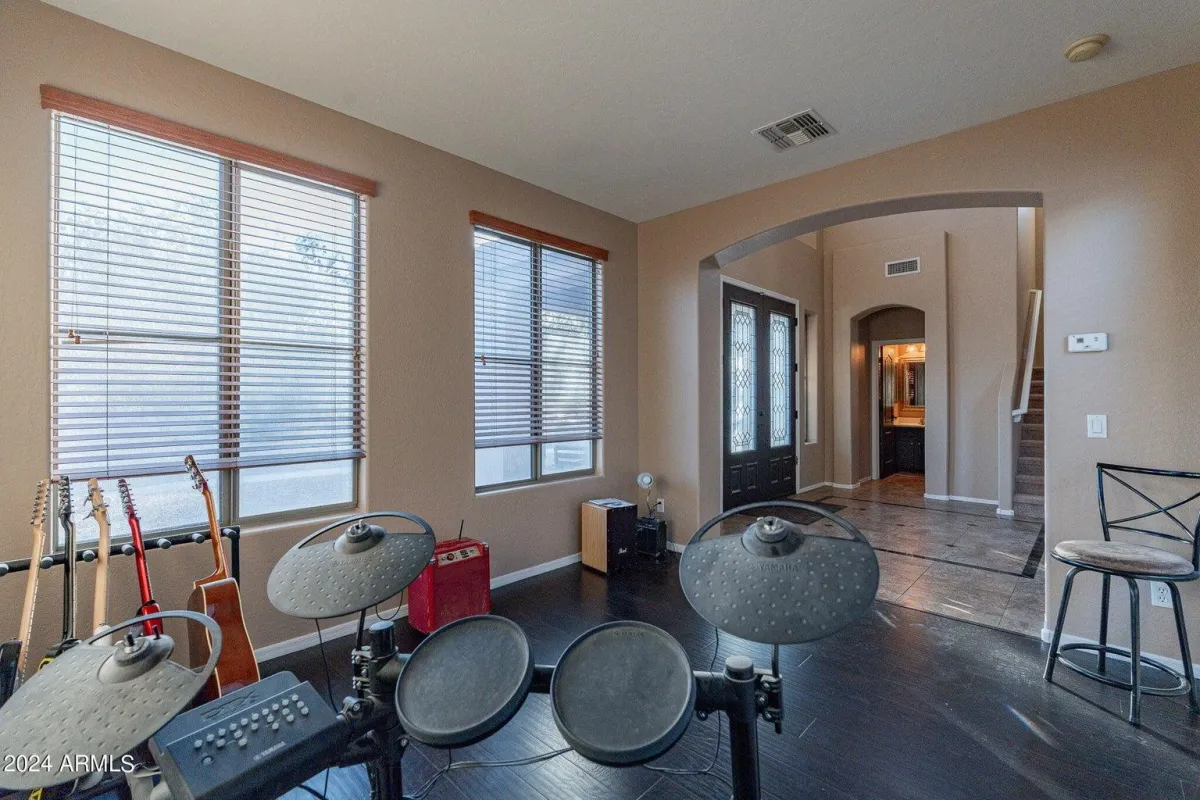 The property at 32121 N Chestnut Trail, San Tan Valley, AZ 85143 is a 5-bedroom, 3.5-bathroom single-family home located in the Johnson Ranch community. With 4,223 sq ft of living space on a 0.41-acre lot, this two-story home includes a spacious layout with multiple entrances, a courtyard, and a patio. The home features a family room, bonus/game room, loft, and a separate den/office. The kitchen offers granite countertops and electric appliances. The property has a 3-car tandem garage and community amenities like a golf course, pool, and playground. It is in the Florence Unified School District and has a quarterly HOA fee of $237.81. The asking price is $719,800.